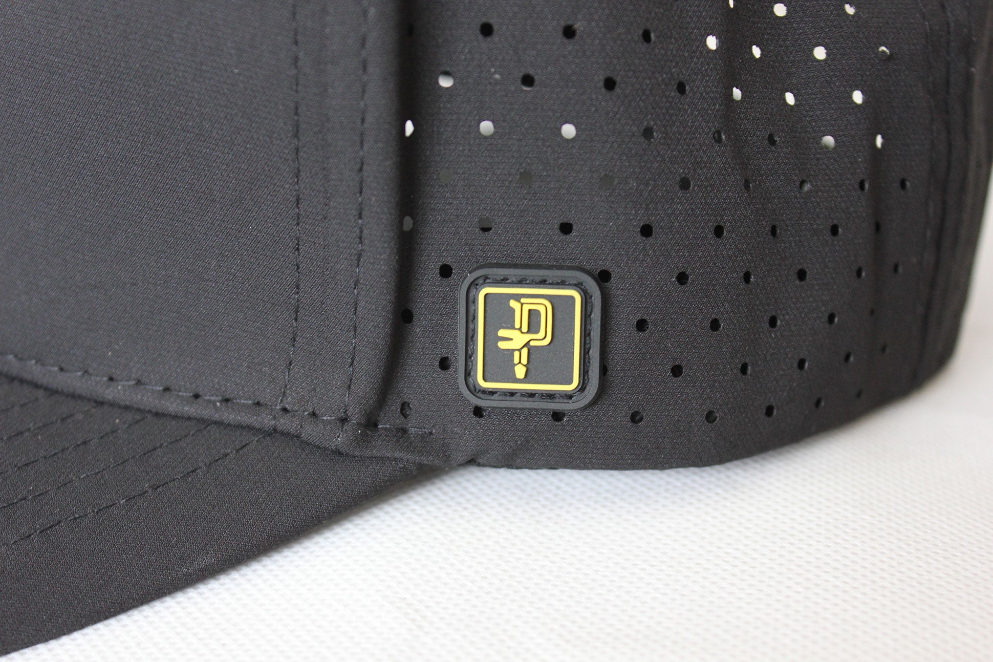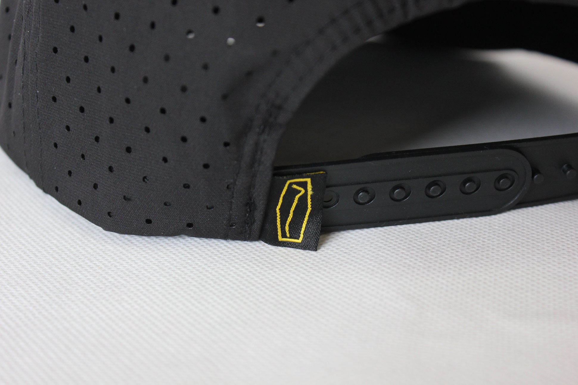 Made from laser cut nylon, features water and sweat resistant properties.