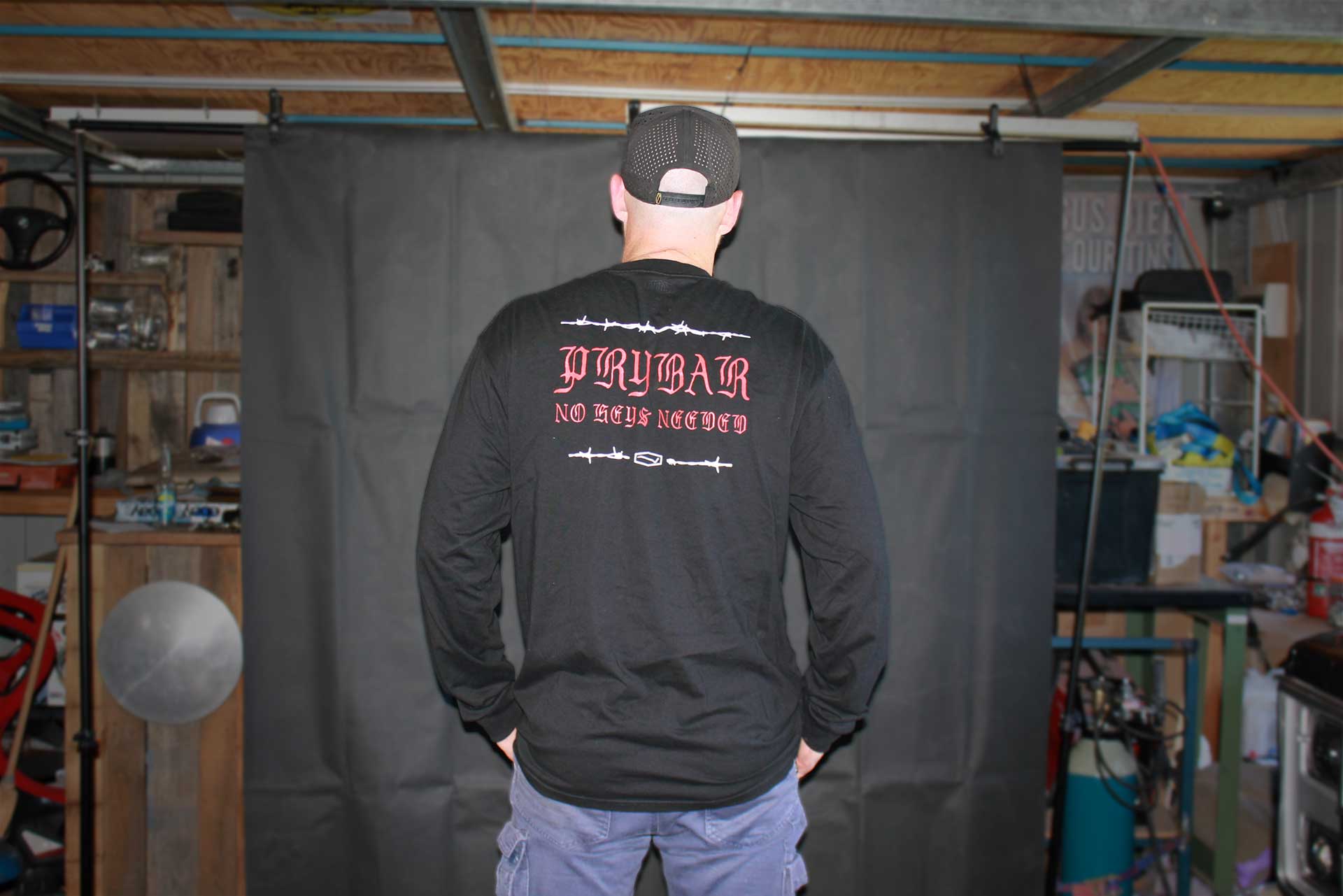 2 colour screen print on the back - PRYBAR - NO KEYS NEEDED