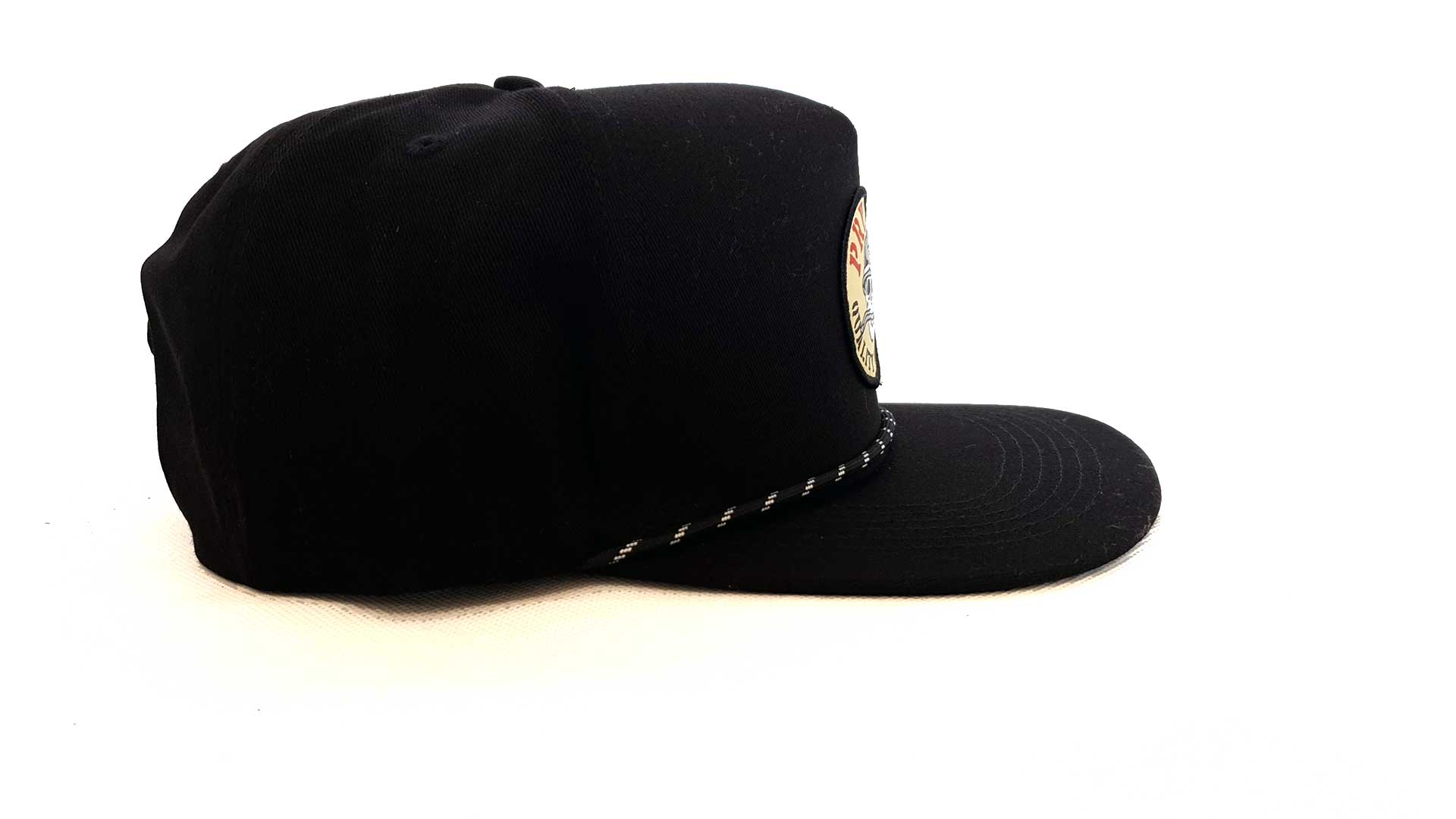 Our Quality Works hat is designed for larger heads. Has woven patch with 2 colour rope dividing the brim and hat. 5 panel cotton design with snap back.