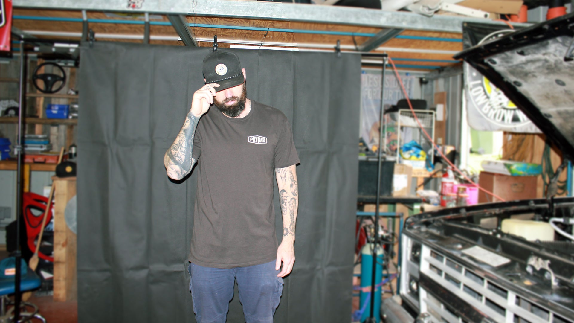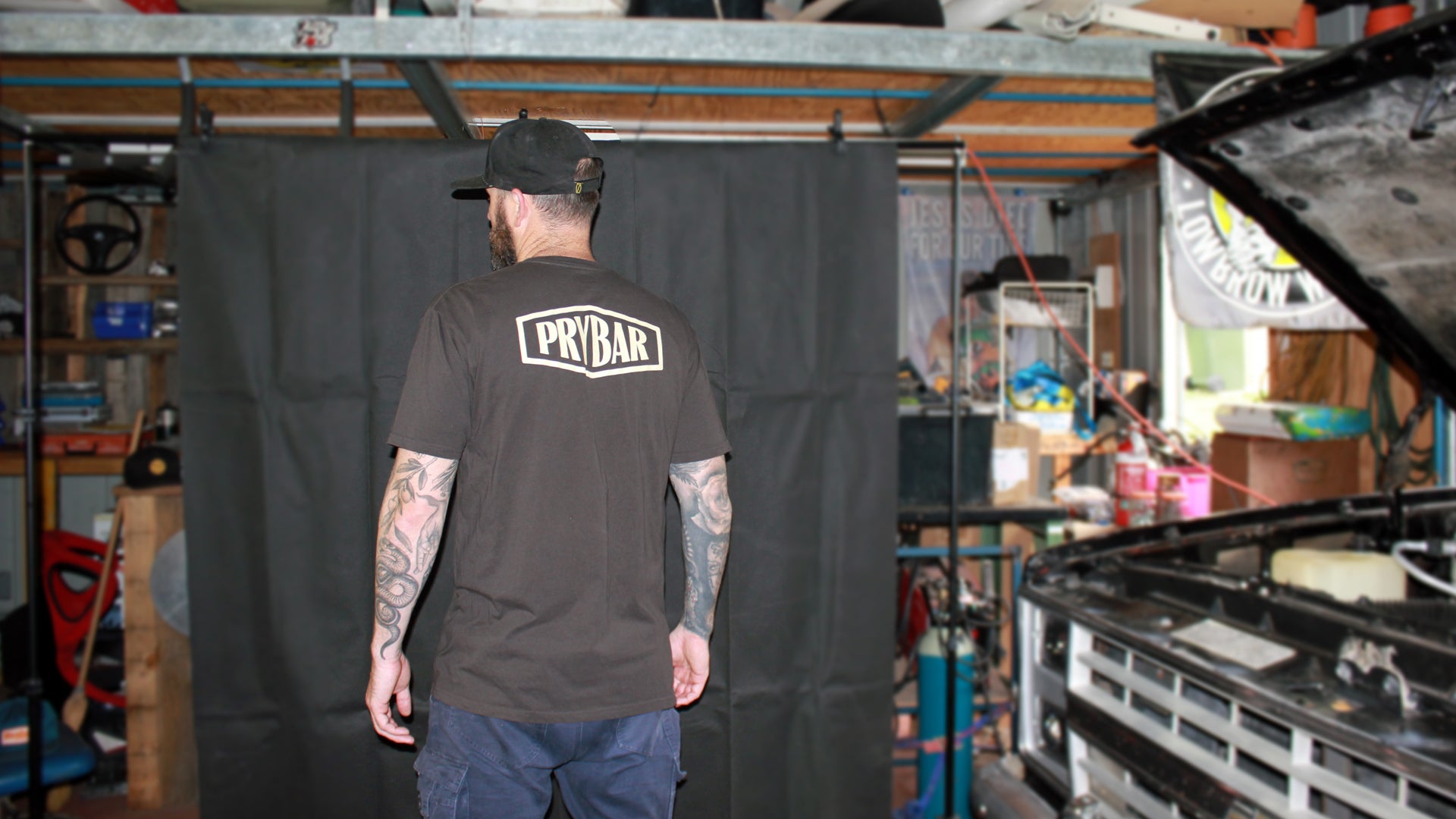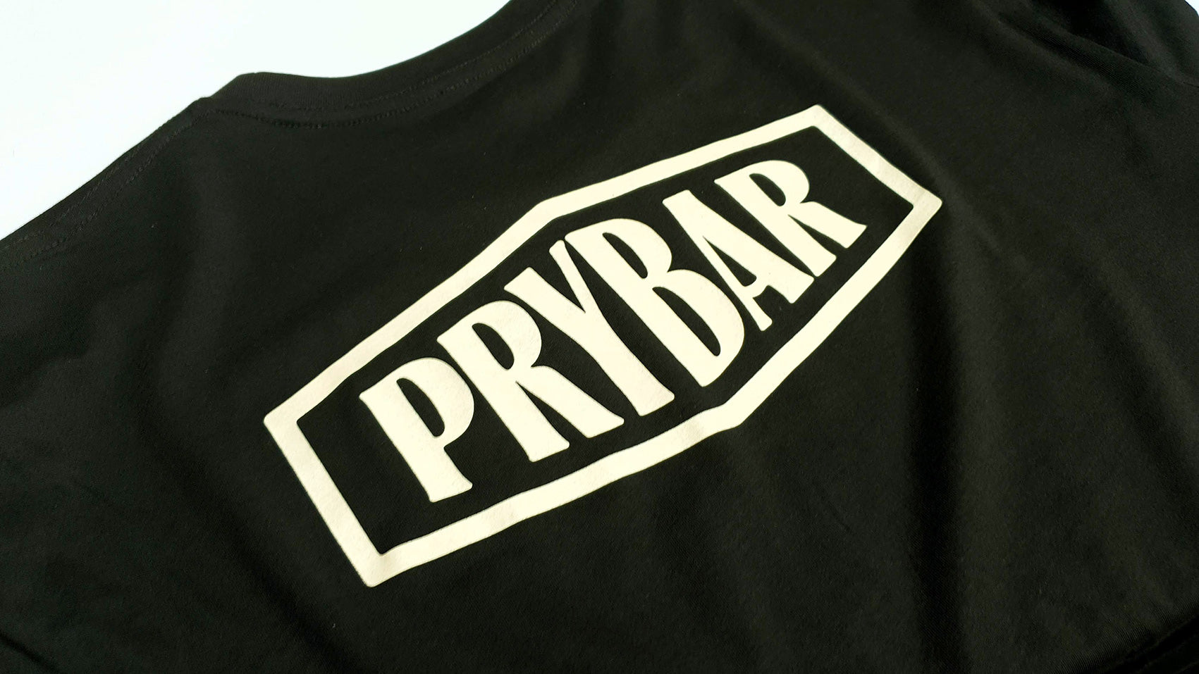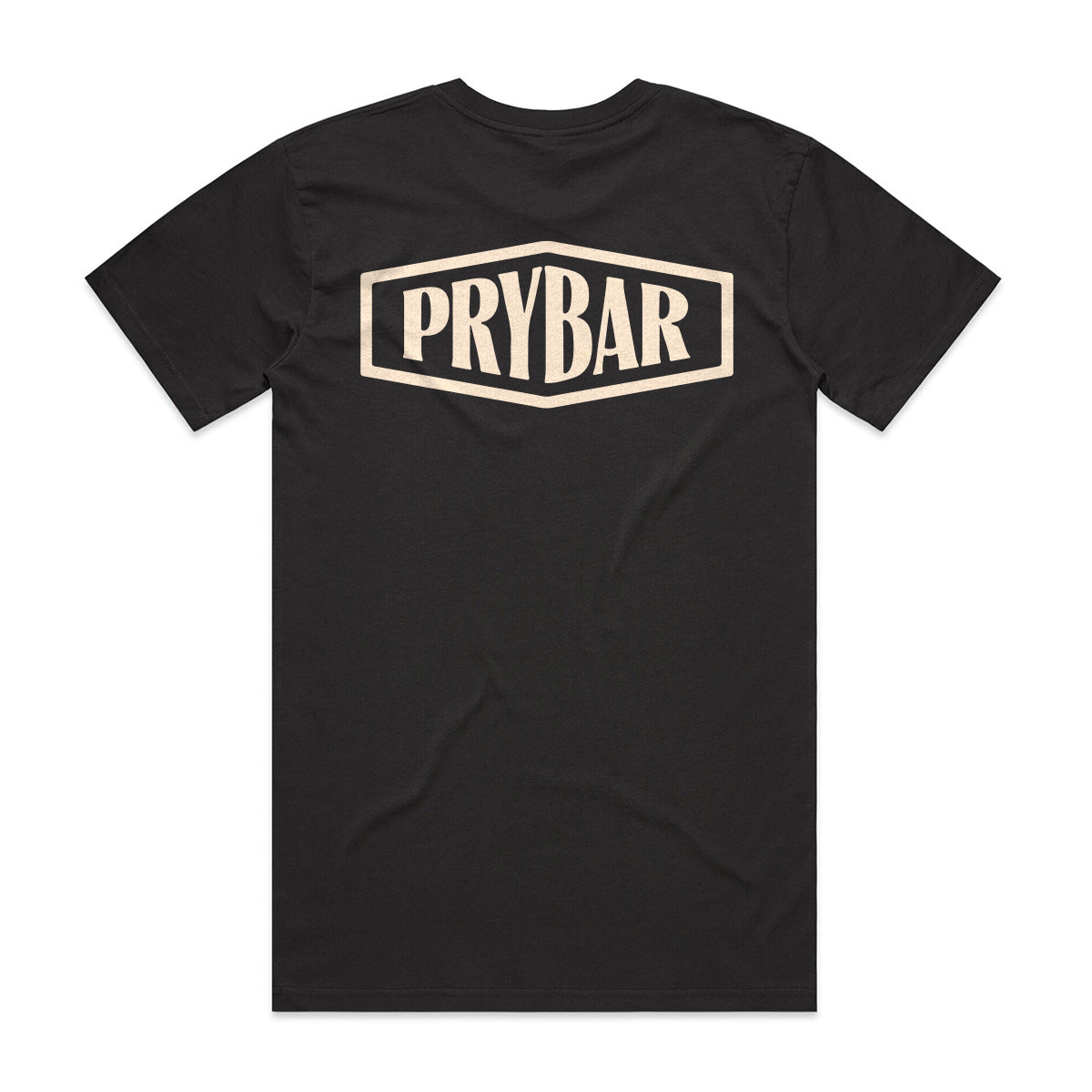 Plain and simple. Coal cotton tee with screen printed cream PRYBAR logo